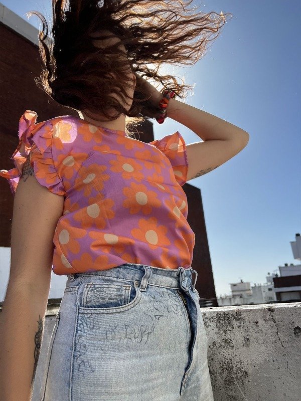 Blusa sin mangas con volados. Posee cierre trasero con botón. Es fresca e ideal para combinar con Jeans, faldas, shorts. Su morfología permite darle un look casual y elegante.